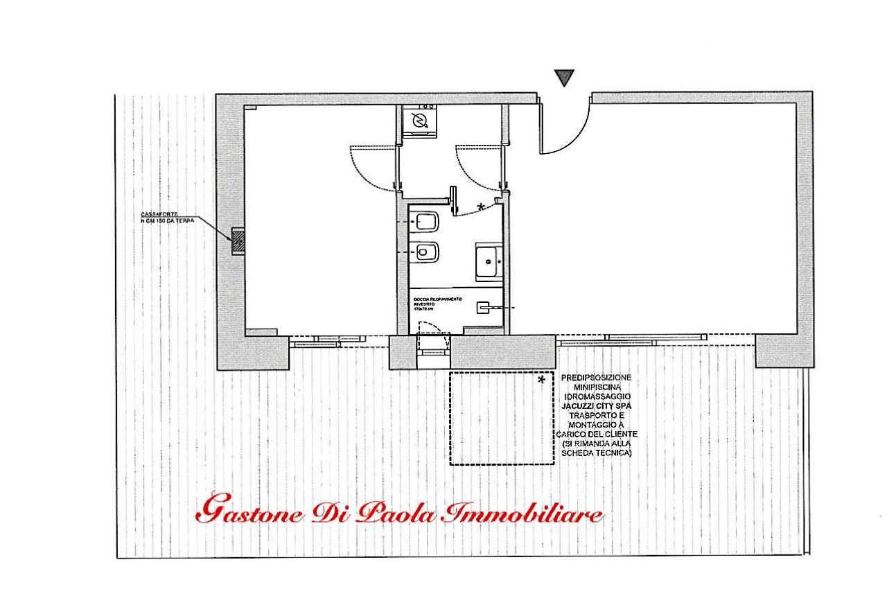 La soluzione con spettacolare vista su skyline e' completata da elegante arredo su misura e terrazzo di ca 50 mq in cui è prevista la